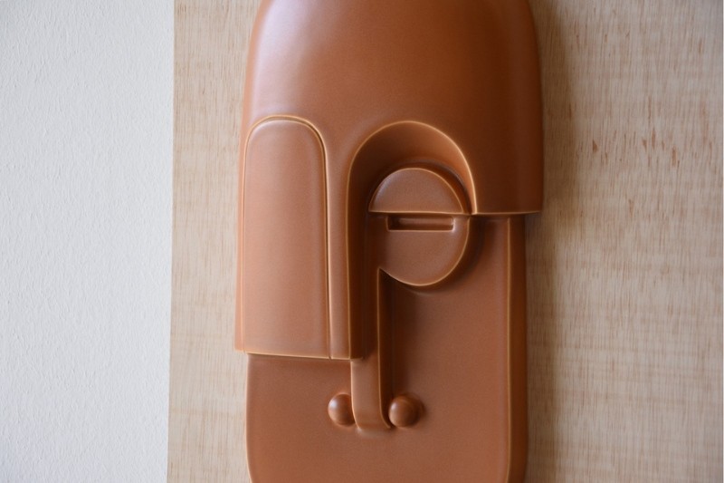 Decora las paredes de tu hogar o espacio hotelero de diseño, con la Máscara Cafuné. Fabricada de forma artesanal en cerámica y en color ocre oscuro, acabado mate, la máscara Cafuné le dará un toque de distinción a nuestros salones o dormitorios aportando una inspiración contemporánea.