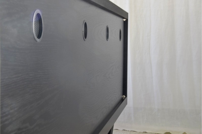 Realizado en DM rechapado en roble natural tenido en negro de acabado mate.