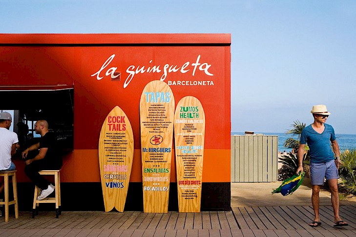 Podríamos decir de La Gingueta que es la evolución del chiringuito. Está situado en Barcelona y fue diseñado por Sandra Tarruella. Con una decoración con marcadas líneas geométricas y la mezcla de colores rojo, verde militar y naranja además de apostar por unas mesas muy sencillas hacen que toda esta combinación marque la diferencia con los demás chiringuitos de playa. Si juntamos esta decoración diferente y la oferta gastronómica de Carles Abellán hacen de La Guingueta un lugar extraordinario para disfrutar desde una buena sangría hasta una paella con la mejor vista al mar Mediterráneo.