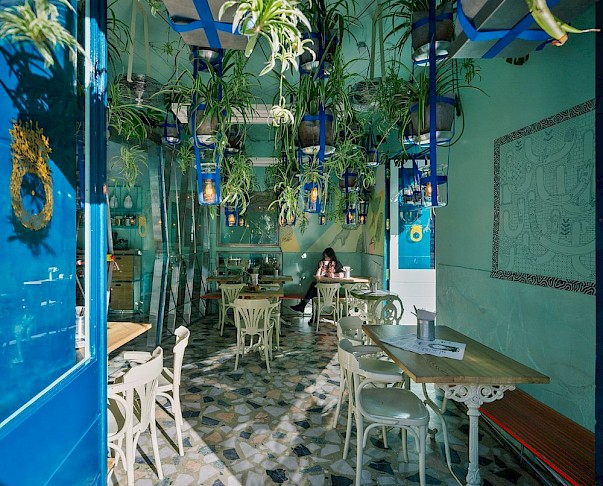 Si te encuentras en Madrid y no puedes ir a la playa Ojalá te la acerca a la capital. Andrés Jaque firma el diseño de este local en pleno barrio de Malasaña. En él nos podemos encontrar sorpresas como una playa, un invernadero de varillas de paraguas, un jardín suspendido o una casita mini-bar. Decorado en tonos aguamarina con detalles en naranja fluorescente y como contrapunto el color natural en la gran mesa-barra y los coloristas grifos de bebidas. Es el lugar perfecto para tomar un brunch a cualquier hora o disfrutar de tostadas, tartas o pastelería artesanal completan su oferta de desayunos que se sirven hasta las 20:00H.