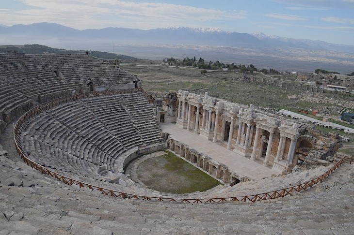 En la parte alta de la colina puedes encontrar los restos arqueológicos de la ciudad romana Hierápolis, que fue construida en esta ubicación para aprovechar las aguas termales que surgían del suelo. Aquí podrás encontrar la “piscina de cleopatra” cuyo fondo está cubierto por restos de la ciudad que se destruyó en diversos terremotos.