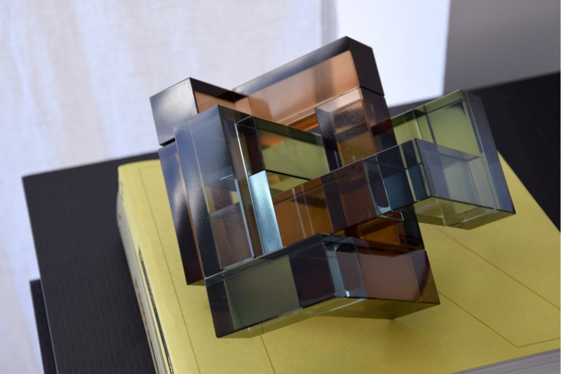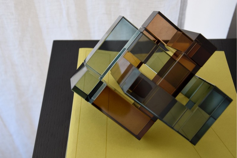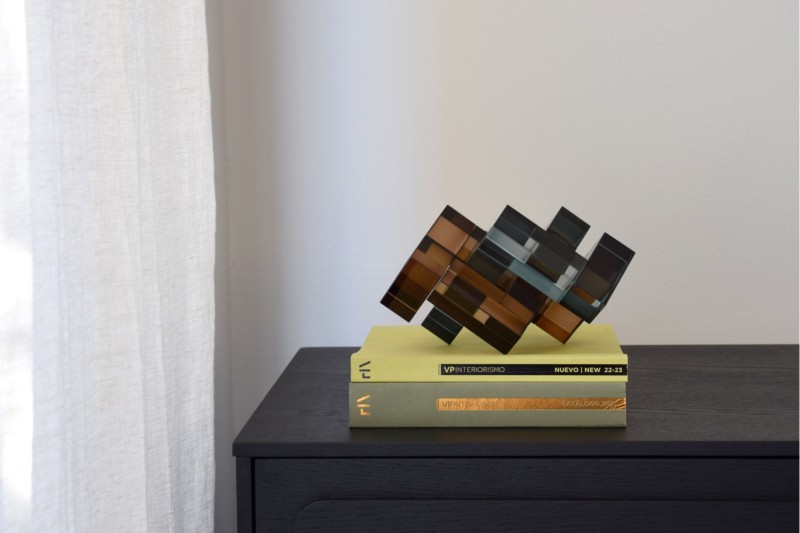 Fabricada en cristal pulido en marrón ámbar y azul, es perfecta para colocar en cualquier rincón, ya que transmite presencia y sencillez, lo que la convierte en una pieza tremendamente versátil y decorativa.