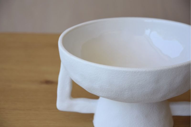 La forma redondeada y voluptuosa de su cuerpo contrasta con la angulosidad de las asas de esta pieza dando lugar a un diseño único y totalmente contemporáneo.