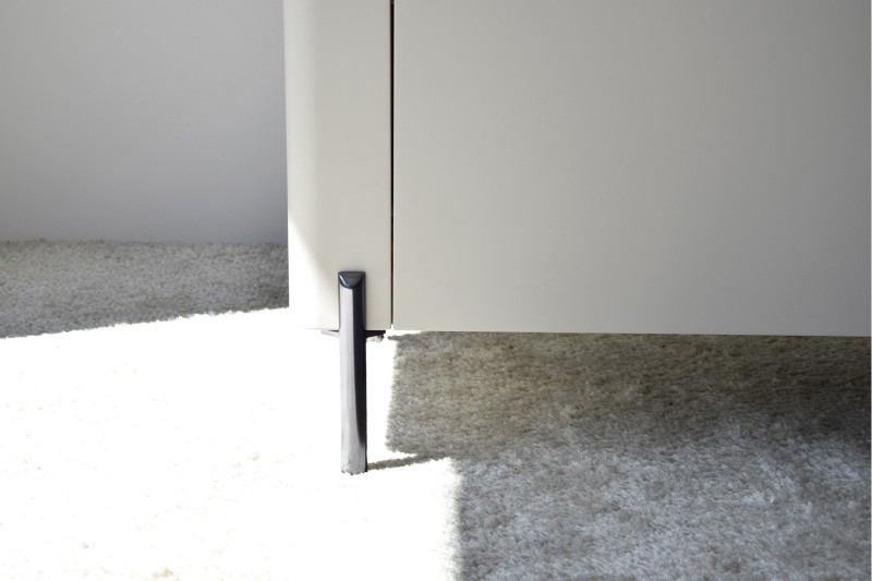 Se trata de una pieza de líneas suaves con bordes redondeados y estética atemporal, en el que destacan sus finas patas de níquel oscuro que le aportan altura y ligereza visual.