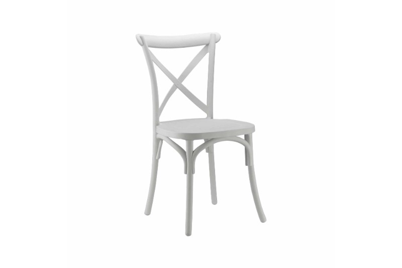 La Silla Vezere fabricada en resina de alta densidad, en color blanco, es una pieza única de líneas sencillas con tratamiento UV, por lo que resulta una opción a tener en cuenta tanto en ambientes interiores como exteriores.