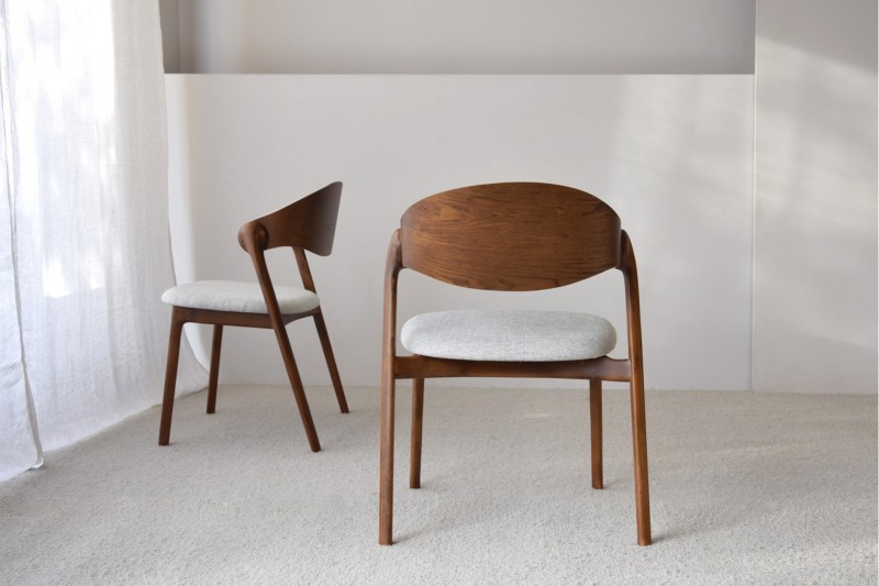 El set de sillas Munduk están fabricadas en madera de haya, y barnizadas en acabado color castaño.