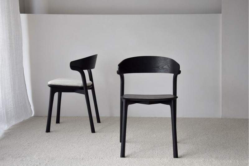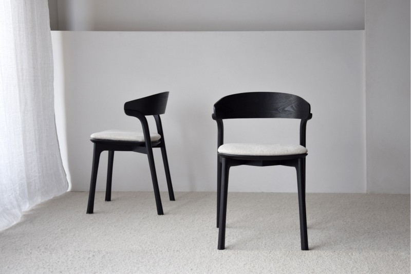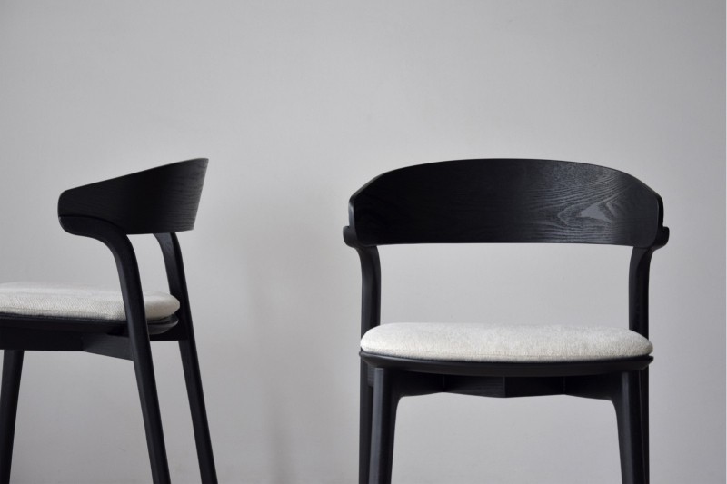 Realizadas en madera maciza de fresno, en color negro, con tapicería en beige.