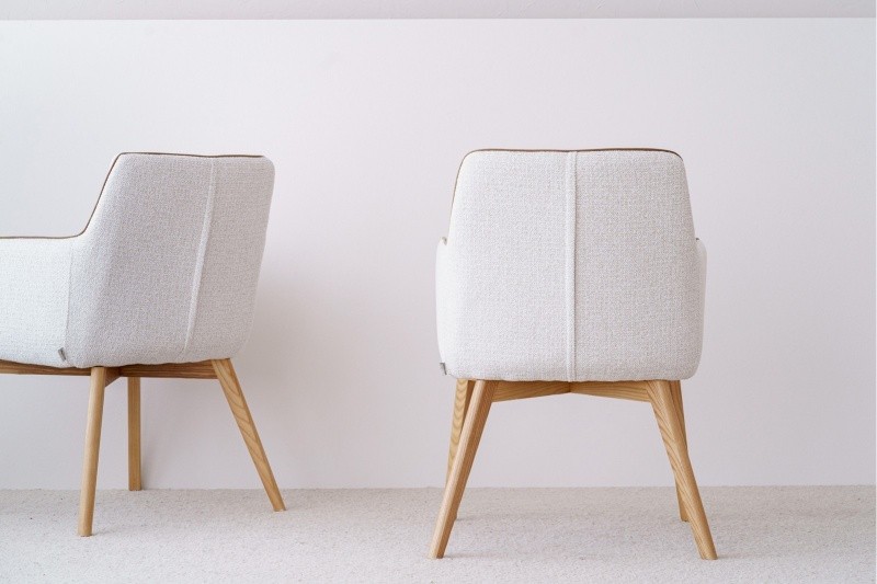 Set de 2 sillas Maral con una elegante combinación de tapizados: la parte interior está tapizada en tono marfil con vivo a contraste en terciopelo y patas de madera en acabado natural.