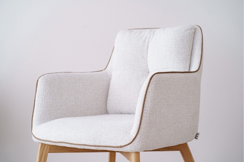 Cada elemento ha sido cuidadosamente seleccionado para equilibrar funcionalidad y estilo, desde los tejidos y patrones hasta los colores, y las patas de madera aportan calidez visual.