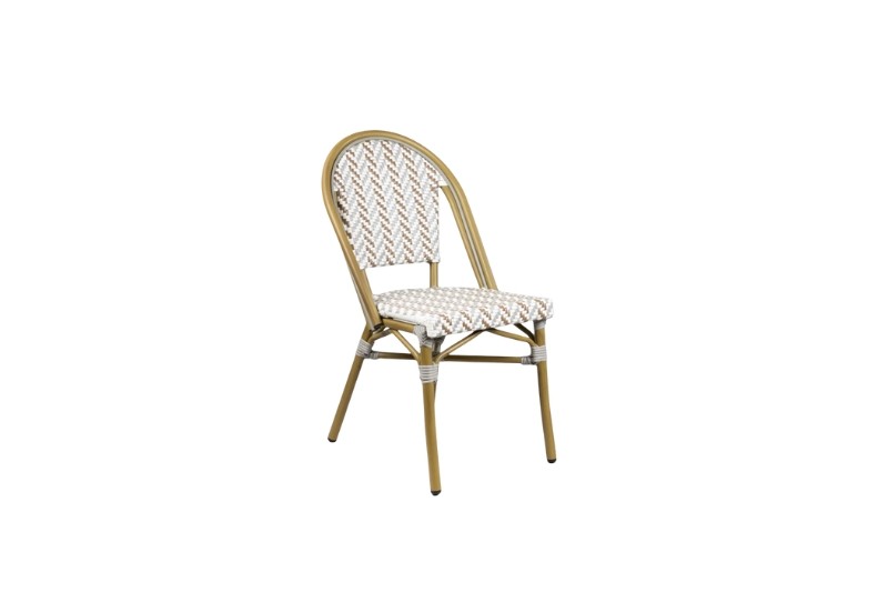 Su estructura ligera y apilable la convierte en una opción versátil para una variedad de entornos, desde terrazas de cafés hasta comedores interiores. El asiento y respaldo ergonómicos garantizan una experiencia de sentado confortable durante horas, mientras que su construcción robusta asegura una larga vida útil, incluso en condiciones de uso intensivo.