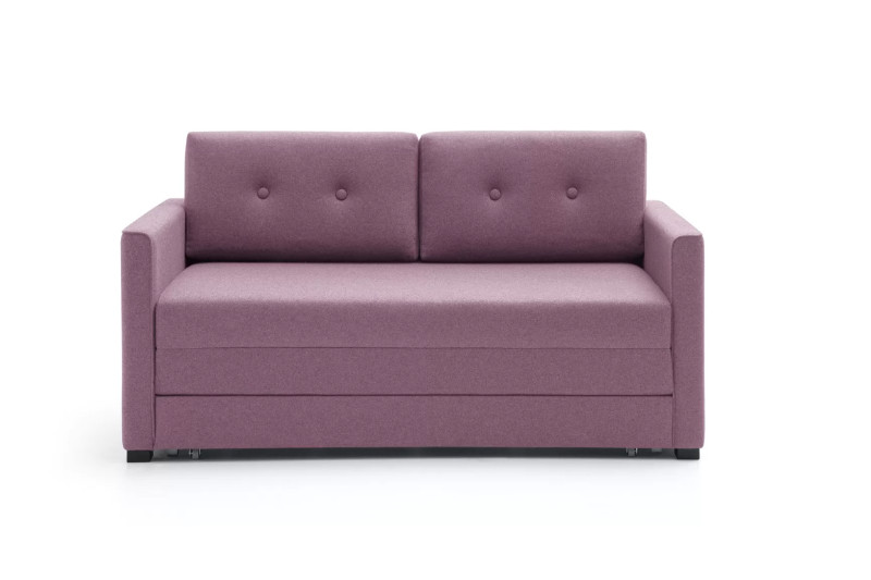 Sus medidas son 168x107x87 cms. Su mecanismo funciona con un sistema nido, con un bastidor metálico que se desliza hacia el exterior, desde la parte delantera del sofá, hasta doblar su longitud en profundidad. El cojín de asiento se abate hacia adelante, sirviendo la misma superficie de sentada, como espacio de colchón.